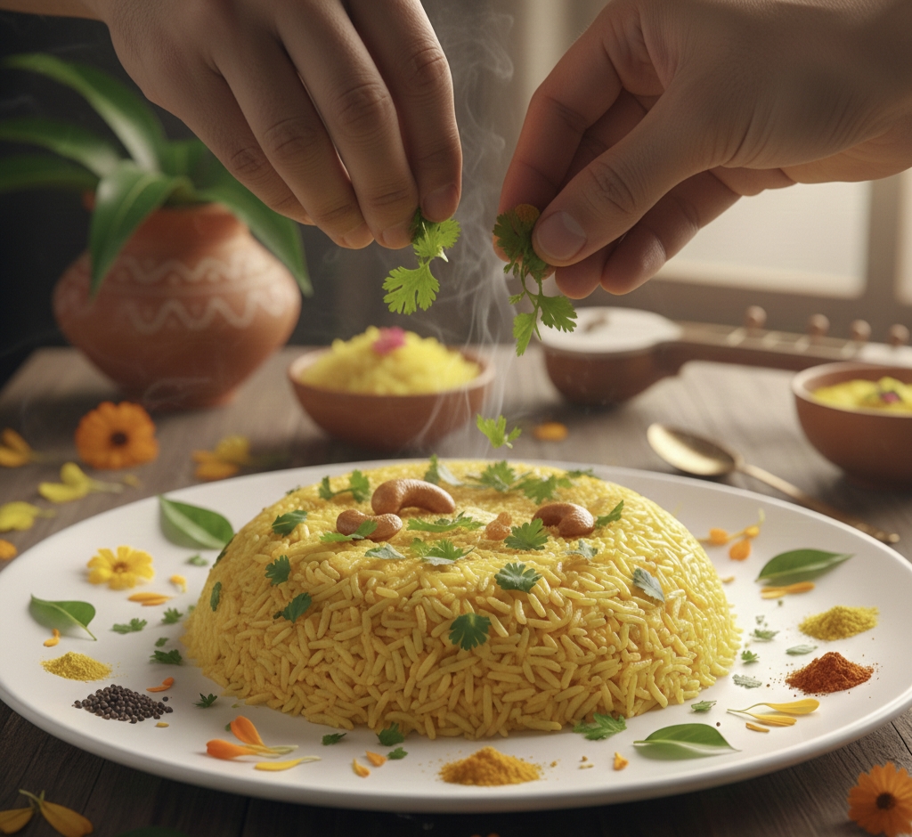 इस डिश की सबसे बड़ी खूबी यह है कि इसे आप अपनी पसंद और त्योहार के रंगों के अनुसार सजावट कर सकते हैं। उदाहरण के लिए, हल्की पिंक टमाटर की प्यूरी, हरी सब्जियां और लाल मिर्च के छोटे टुकड़े इसे रंगीन बनाते हैं। वसंत पंचमी के लिए बटर मसाला राइस में हर्ब्स का संतुलित इस्तेमाल स्वाद और पोषण दोनों बढ़ाता है। मसाले और हर्ब्स का मिश्रण घर में महक फैलाता है और खाने का अनुभव भी बढ़ाता है। अगर आप चाहें, तो ऊपर से थोड़ी मलाई या बटर के छोटे टुकड़े भी डाल सकते हैं।