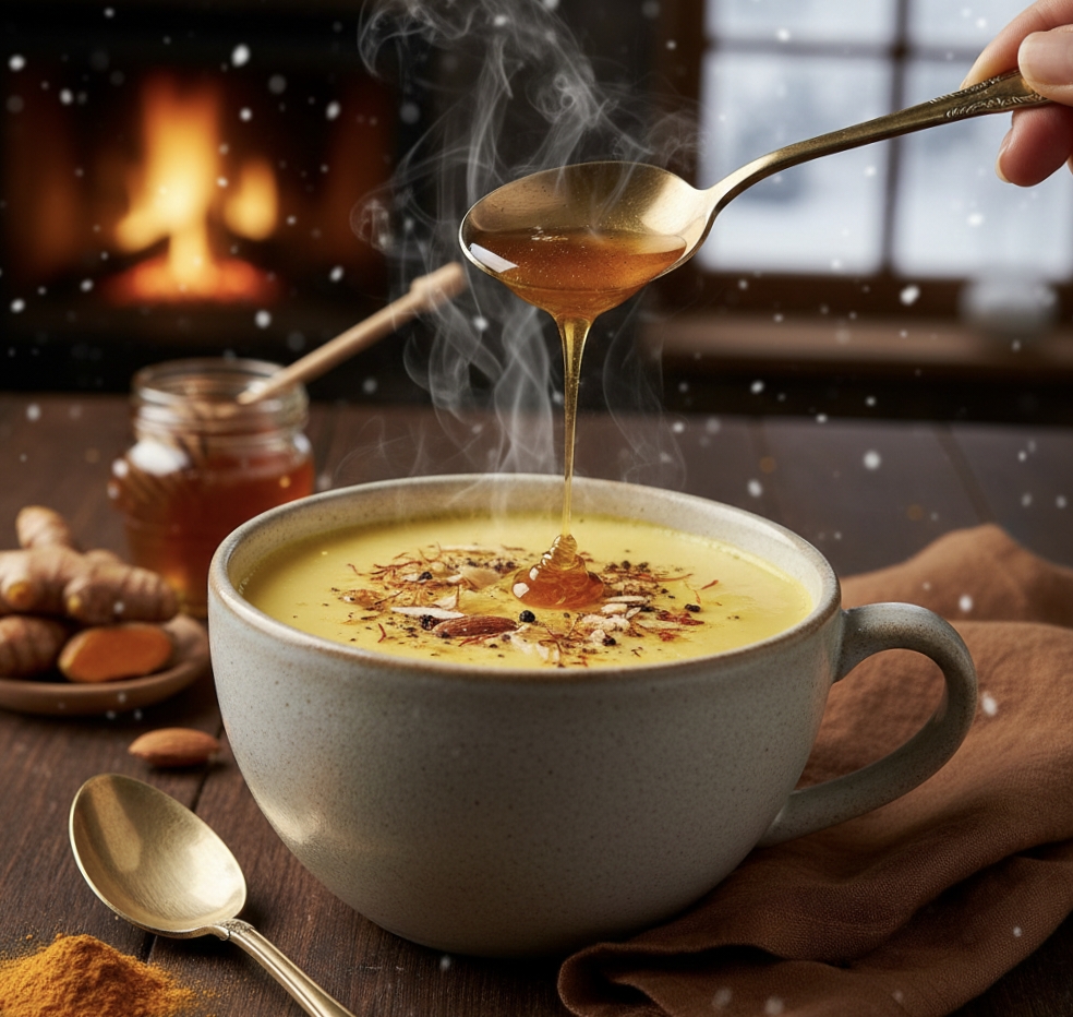 सर्दियों में बच्चों के लिए हल्दी वाला दूध स्वास्थ्य और ताकत दोनों बढ़ाने वाला पेय है। हल्दी में करक्यूमिन तत्व होता है, जो प्राकृतिक एंटीबैक्टीरियल और एंटीवायरल गुणों से भरपूर है। हल्दी वाला दूध बच्चों की रोग प्रतिरोधक क्षमता को मजबूत बनाता है और उनकी हड्डियों को भी मजबूती देता है। इसे बनाने के लिए ताजे दूध का उपयोग करें। दूध को हल्की आंच पर गर्म करें और उसमें ½ चम्मच हल्दी डालें। बच्चों के स्वाद अनुसार इसमें शहद डालकर इसे मीठा करें।