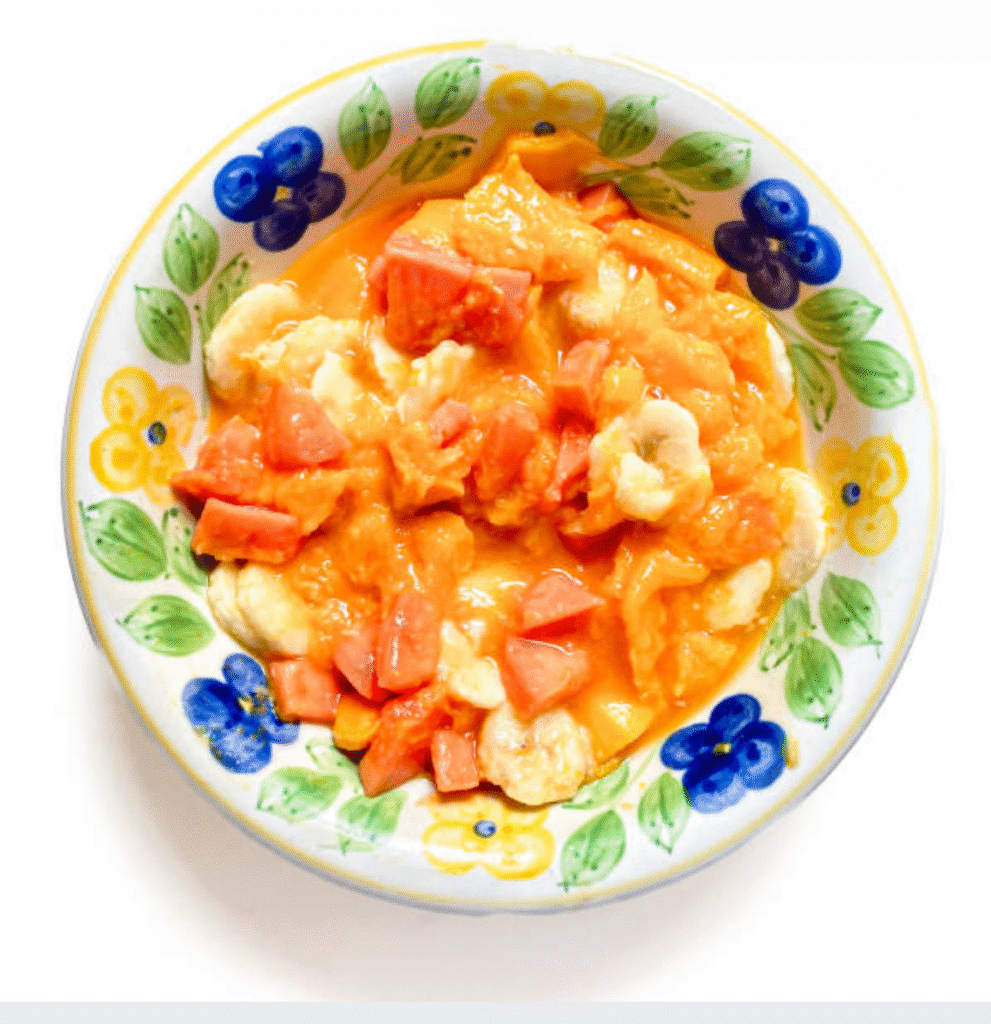 1. फल धोकर छोटे टुकड़ों में काट लें।
